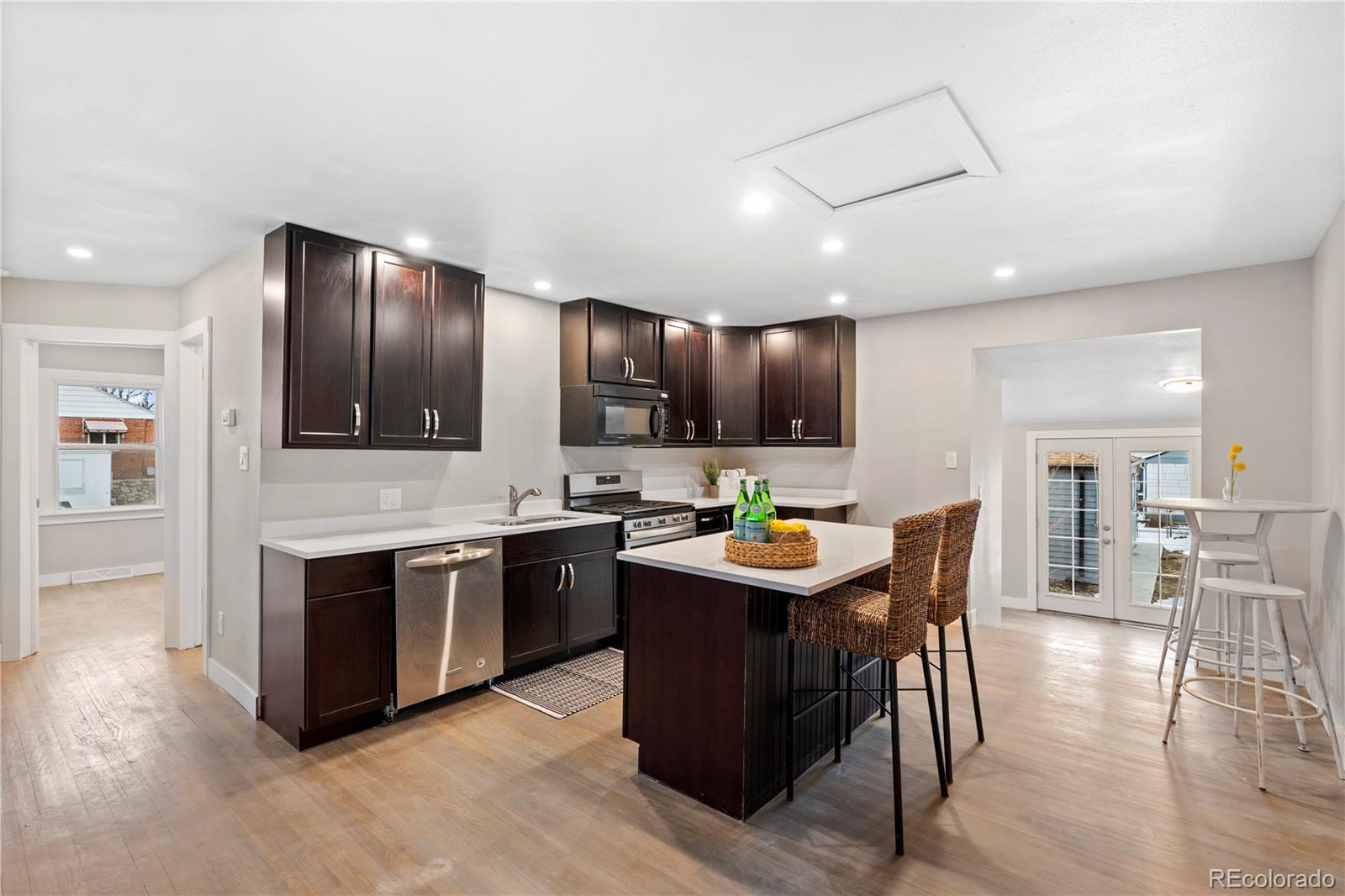 Sitting on a fantastic corner lot, this beautiful Sunnyside home is filled with all of the things any discerning buyer wants. This home has been updated and features 3 bedrooms and 2 bathrooms. Walking in, the open-floor plan greets you with refinished gray oak flooring and transitional finishes. The kitchen opens up to the front of the home and features an eat-in island and newer appliances. The home is flooded with natural light and has an open and airy feel. Off the main space, the primary bedroom has a vaulted ceiling and generous and updated en-suite. In addition to the three bedrooms there is a large flex space off the back of the home that can be used as an office or play space. Best, the home sits on a large corner lot with a 2 detached car garage. The seller will move the island to the west if the buyer decides to have a formal dining space. Additionally, seller will install a refrigerator before closing. This home is in one of Denver's most desirable neighborhood's and just feet from some of Denver's best bars and restaurants. Finally, owner is offering a preferred lender credit of $6000. Welcome home!